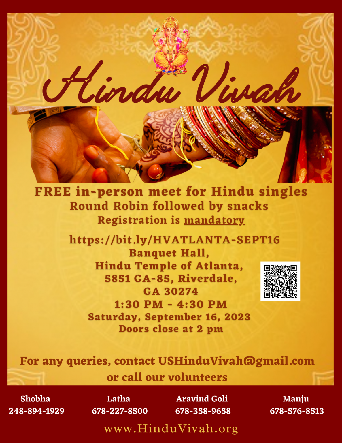 FREE in-person meet for Hindu singles on Sept 16th, 2023
