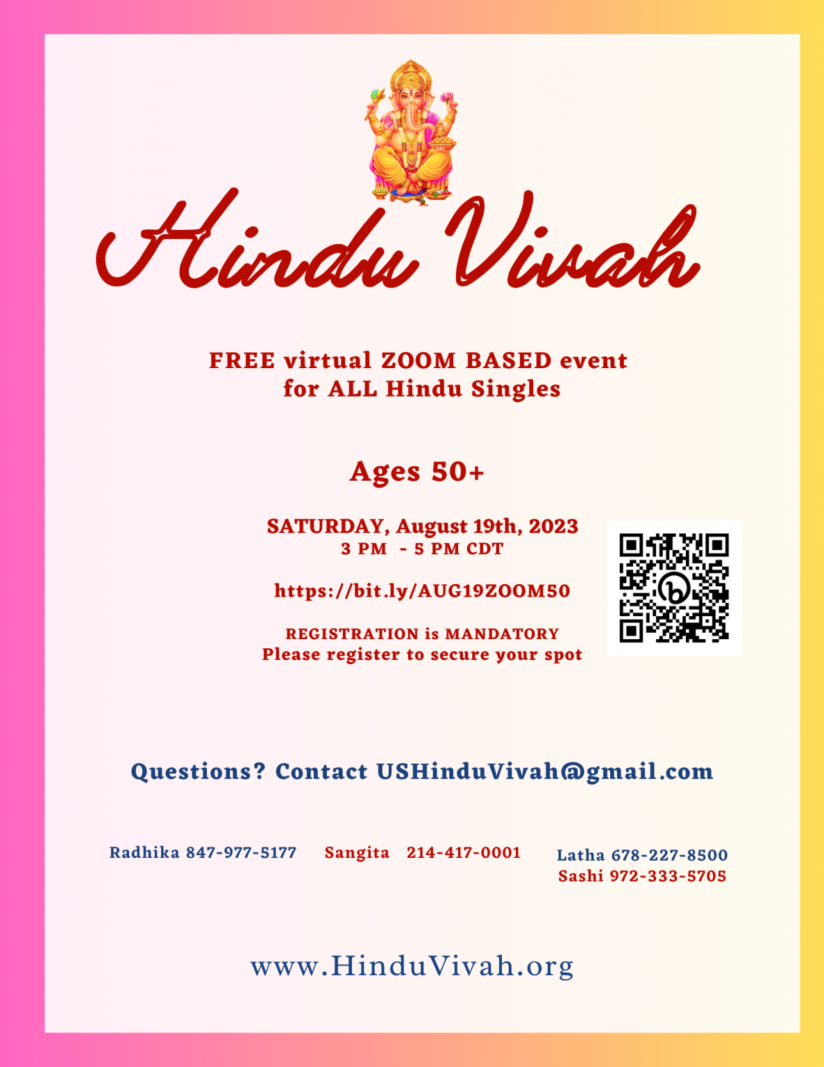 FREE virtual ZOOM BASED event for ALL Hindu Singles on Aug 19th, 2023