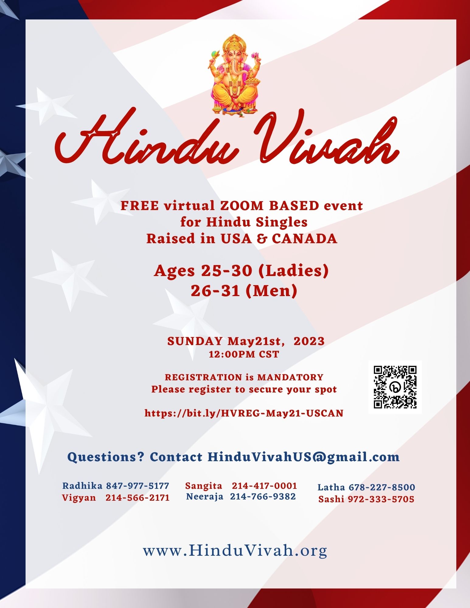 Free Virtual Zoom Based event for Hindu Singles Raised in USA & Canada Ages 25-31May 21st, 2023