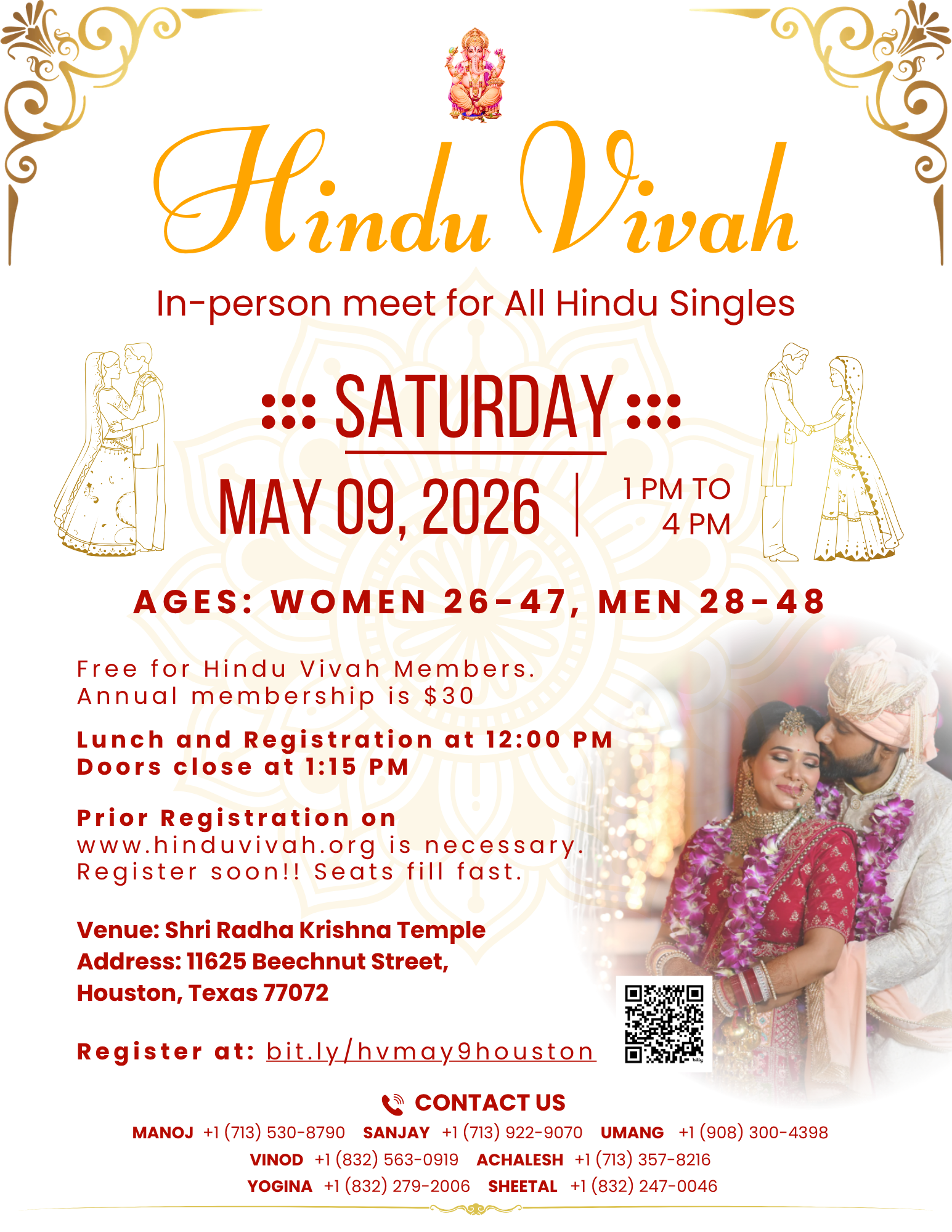 In-Person Meet for Hindu Singles | Ages 26 – 47 | 1–5 PM Central Time