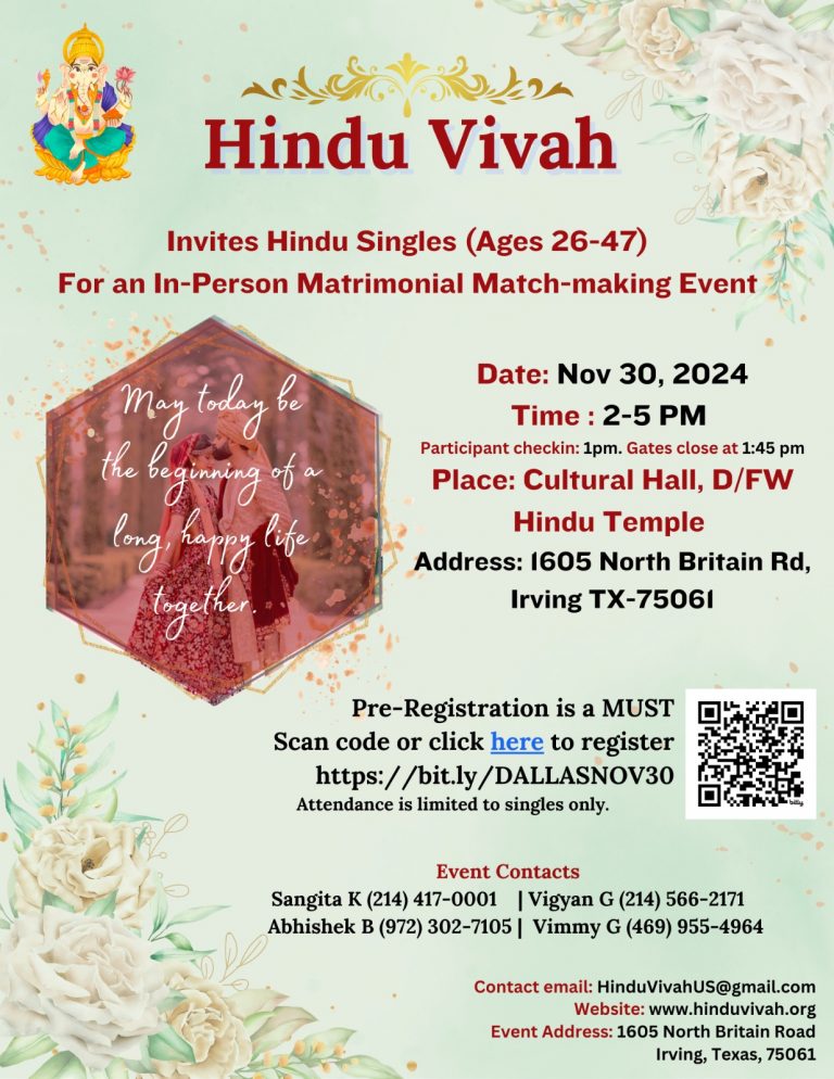 Invites Hindu Singles For an In-Person Matrimonial Match-making Event 2024