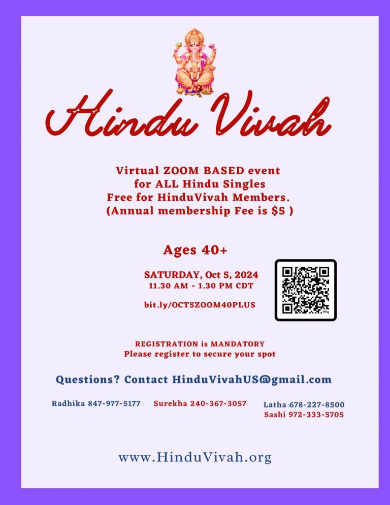 Virtual ZOOM BASED event for ALL Hindu Singles on 5 Oct, 2024