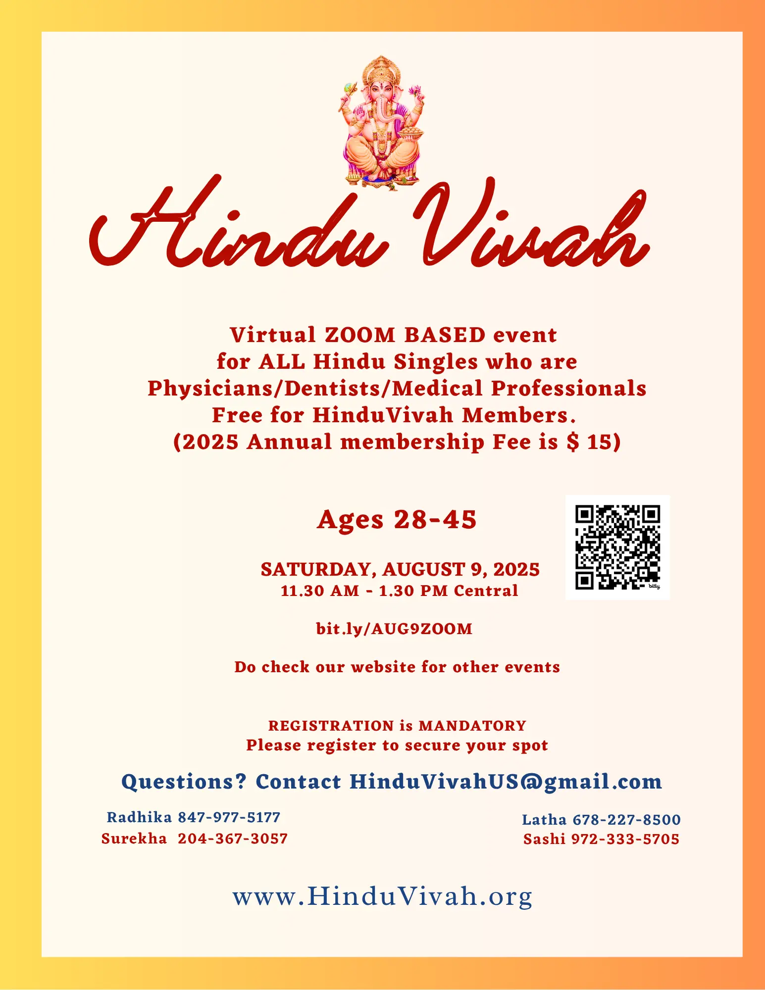 Virtual ZOOM BASED event for ALL Hindu Singles on 9th Aug, 2025
