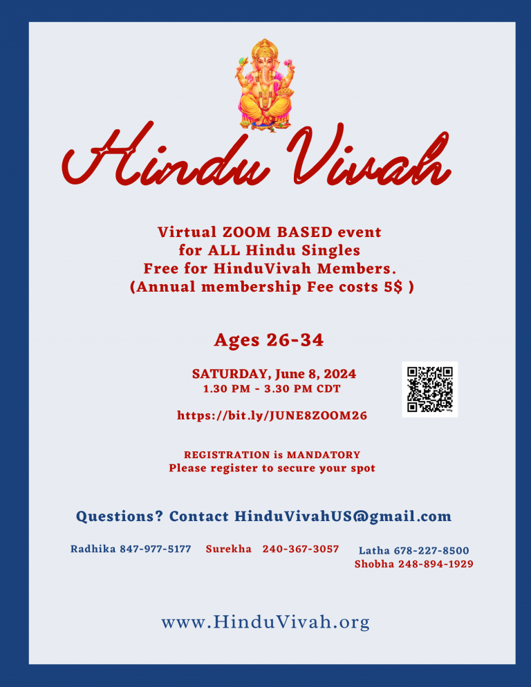 Virtual ZOOM BASED event for ALL Hindu Singles on Jul 8, 2024